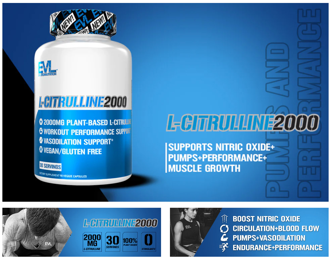 EVLution Nutrition 左旋瓜氨酸 2000 促进肌肉生长 增强耐力 90 粒植物胶囊 30 份